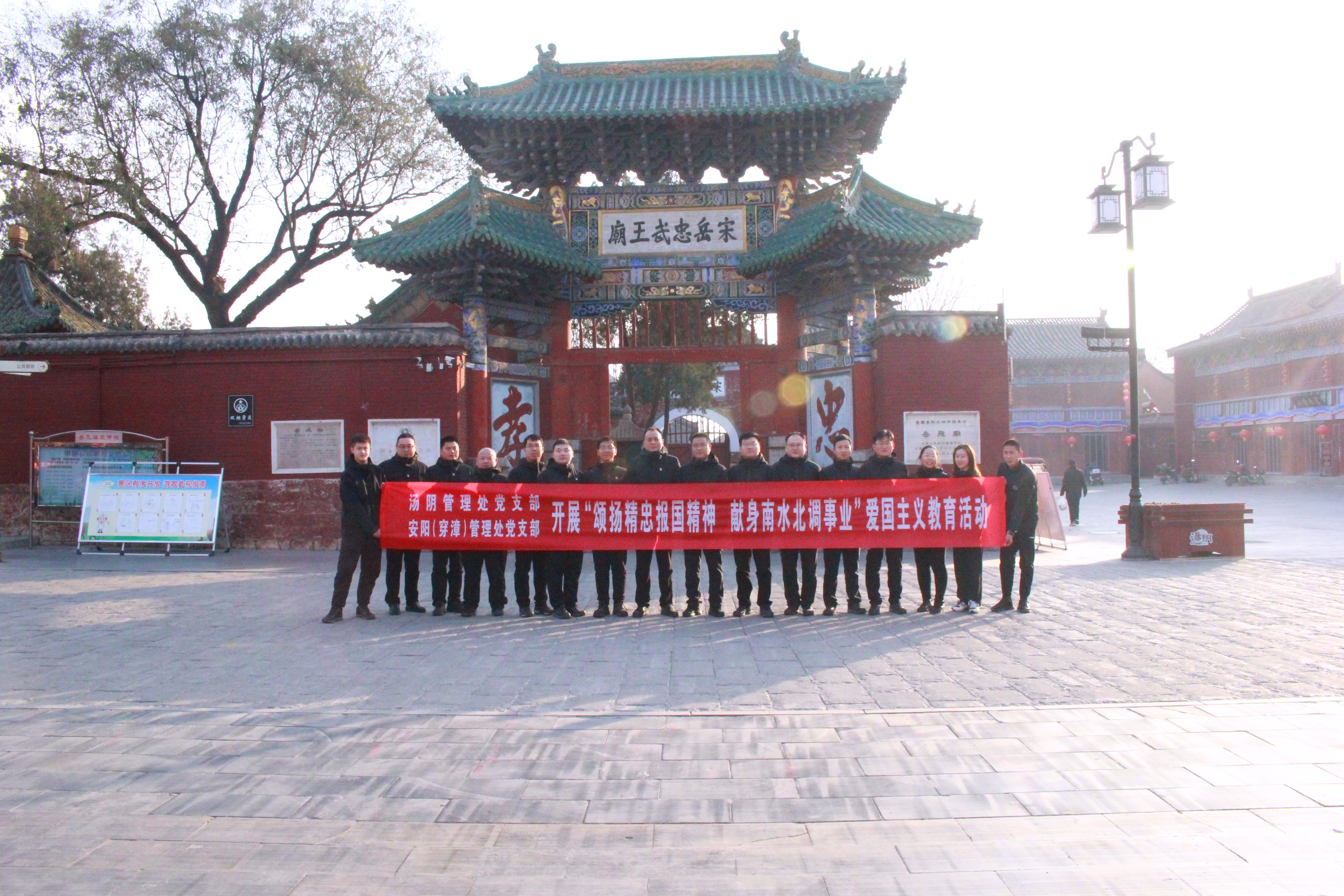 为加强党员干部思想建设,大力弘扬中华民族爱国主义精神,12月18日,汤阴管理处党支部联合安阳管理处(穿漳管理处)党支部到汤阴县岳飞纪念馆,开展了“颂扬精忠报国精神,献身南水北调事业”爱国主义活动。