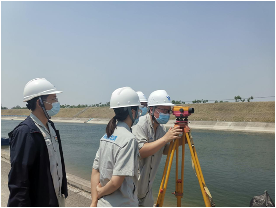 “大家戴好安全帽,结合刚才我们讲解的知识,现在一起去现场实际体验一下防洪加固项目施工过程。”说完,大家一起来到了防洪加固项目现场。天气温度很高,太阳照得有些睁不开眼,但丝毫没有影响大家学习的热情。“这是复核高程的水准仪,大家可以实际操作一下。”王阳阳的额头布满了汗水,后背也已经湿透。“怎样才能确定土方回填压实度满足设计要求呀?”在矩形槽排水沟土方回填施工现场庞荣荣问道。“首先,我们要求土方每层虚铺25厘米,碾压6遍是通过做土方碾压实验,其次,每次回填完成我们都要做环刀取样,检测压实度。”管理处负责人详细地回答了庞荣荣提出的问题。