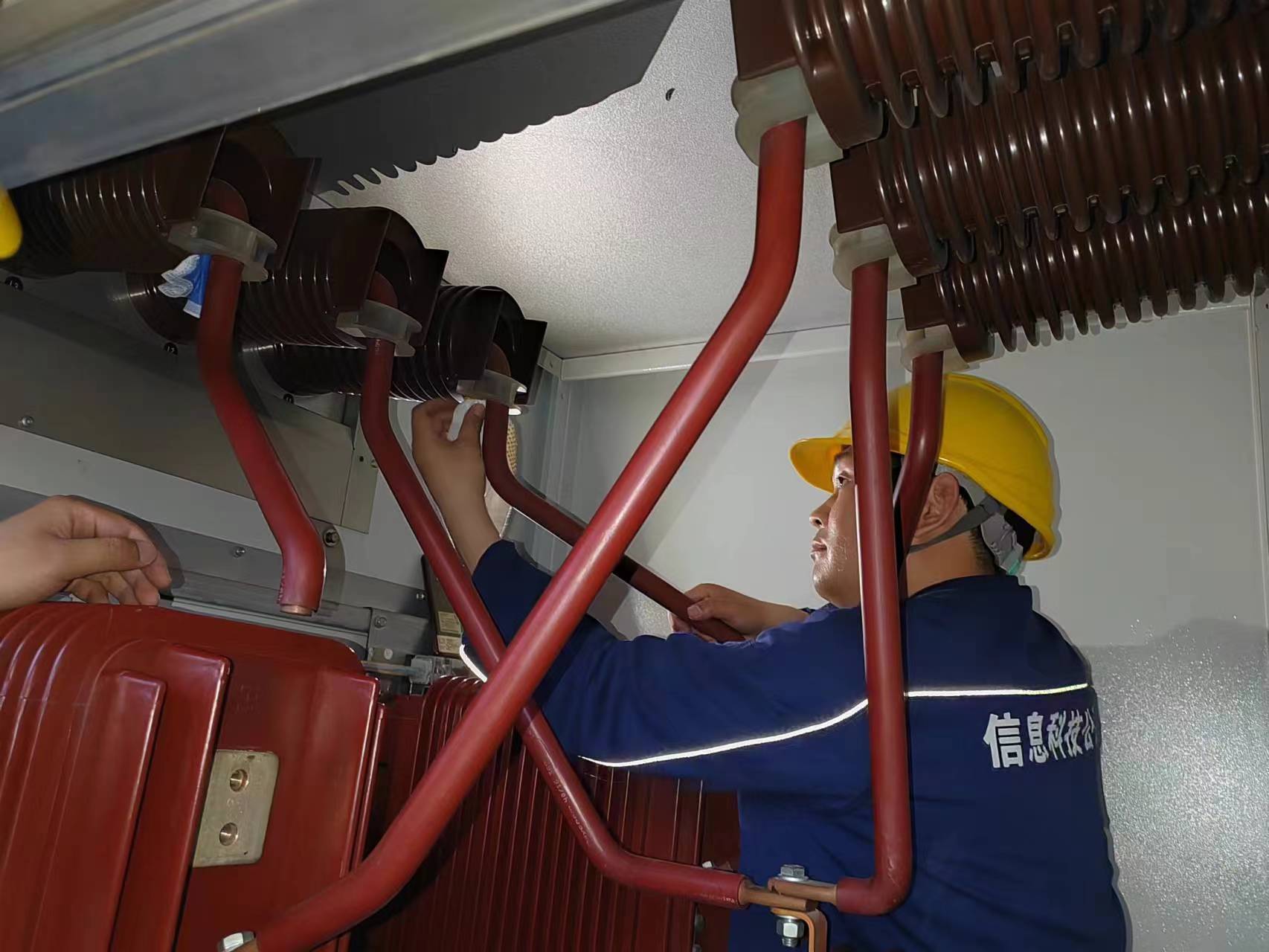 驰而不息,倾注“热辣”汗水。时值五月,天气还不算太炎热,但春检一线运维人员额头上已经渗出密密麻麻的汗珠。在南水北调中线渠道上,春检线路组每天迎着太阳攀爬上一级一级杆塔,消除影响供电安全的隐患问题。日渐黝黑的皮肤和被洇湿的工装则是他们最好的“印记”,这不仅是对毅力更是对体力的考验。站内试验组则需要在封闭闷热的环境中,对一台台电力设备进行拆卸和试验检测,不能有丝毫麻痹大意。尤其在变压器室内,需仔细检查各个电缆头,准确测量高低压侧直流电阻和变压器铁芯绝缘电阻,哪怕额头上顺流而下的汗水也丝毫不影响他们的专注,他们用默默无闻的奉献和付出为春检工作质量保驾护航!
