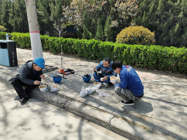 疫情期间赵军锋等运维人员中午露天“自助餐”