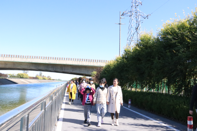 中午时分,职工家属来到涞涿管理处,近距离参观了中线工程标准化渠道,在惊叹南水北调工程伟大的同时,禁不住停下脚步与渠道留影纪念。