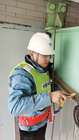 针对以上情形,朱志伟迅速筹备了以张特同志为首的小组,即刻开展专题攻关。临危受命的张特在历经数次现场勘察后发现,沿线起重设备的工字钢轨道安装高度普遍达到6至8米,如果开展轨道检修,以传统搭设爬梯的方式不仅安全性差且移动不便,仅适合局部检修作业;而如果采用搭设脚手架的方式则准备时间过长,安全性一般,且部分闸室地面空间狭小,不具备搭设条件,并且可能会影响闸门调度。
