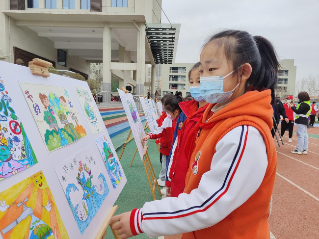 3月21日,徐水管理处联合徐水区水利局在徐水小学举办了“徐水小学2022年世界水日主题升旗仪式”宣传活动。9名师生代表分别分享了生活中发现的节水小窍门,通过画手抄报、制作节水知识展板等形式,在师生心中植入爱护水资源、保护南水北调工程的意识。三级一班学生许家冀说道:“通过今天的宣传活动,我了解了南水北调工程的伟大,也明白了节约用水的重要性,作为小学生,我们在生活中要节约每一滴水,做好节水护水的小小志愿者。”
