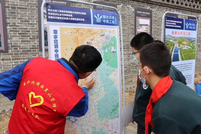 3月22日上午,西黑山管理处志愿服务队来到保定市水利博物馆,为前来参观的冀英小学和保定市十七中学的同学们普及节水知识和南水北调工程知识,学生对南水北调工程兴致盎然,频频与志愿者开展互动:“南水怎么北调?”“我们喝的水是南方的水吗?”志愿者就南水北调中线工程概况及远期规划进行了详细讲解,并为学生发放了宣传册和南水北调中线建筑物趣味拼图。