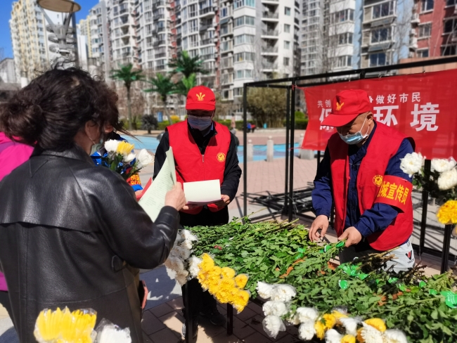 3月27日上午,西黑山管理处和信息科技公司天津事业部的十余名志愿者分别在三个不同居民社区,通过悬挂宣传条幅、发放宣传资料、展板展示、播放影视资料等多种方式,普及保护环境、文明祭祀相关知识,倡导以“文明祭祀、环保祭祀、节俭祭祀、安全祭祀”为前提的祭祀活动,并以青年、中年、老年人对文明祭祀的不同认知为出发点,通过文字、图画、小视频等方式开展有针对性的讲解宣传,过程中穿插文明祭祀相关知识有奖问答及赠送祭祀鲜花等小活动,调动了广大居民的积极性。