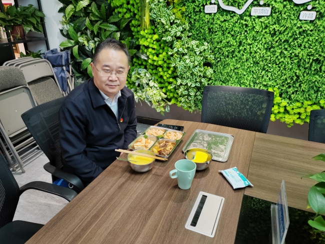 国庆假期后的第一天,分调度中心业务负责人王健就开始在分公司封闭工作。为确保重大活动期间首都及沿线供水安全,他严格按照集团公司和中线公司安全加固工作要求,逐项逐条抓落实,紧盯调度值班管理,严明工作纪律,带头作表率。在参与封闭工作的第19天,他迎来了自己的生日,一荤一素、两块饼、一碗稀饭就是他的生日餐。