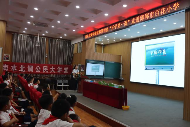 “为什么要建设南水北调工程呀?”“南方的水是怎么来到北方的?”“南水北调遇到河了怎么过啊?”9月7日,邯郸管理处“开学第一课”走进邯郸市复兴区百花小学。课堂上,宣讲老师通过播放幻灯片和视频介绍了南水北调工程建设历史,为师生上了一堂生动实用的南水北调知识课。