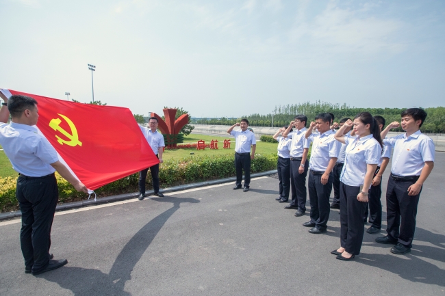一渠清水,向北流。在南水北调干渠旁,支部书记带领全体党员一起高举右手,面对鲜红的党旗,再次庄严宣誓:“我志愿加入中国共产党……随时准备为党和人民牺牲一切,永不叛党。”铿锵恢宏的誓词,强烈震撼着在场的每一位党员,一字一句,神圣而豪迈,铮铮誓言,体现了党员同志们对中国共产党的无限忠诚,坚定了入党使命,奋斗初心。