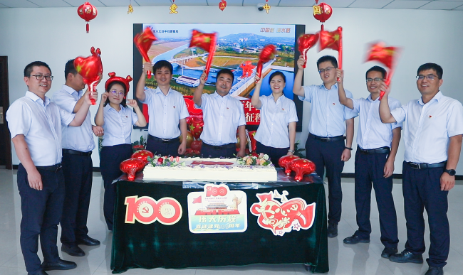 “七一”前夕,基层(郑州)党支部党员在南水北调工程一线,通过向党说句心里话、重温誓词、唱红歌、做生日蛋糕等多种形式来庆祝中国共产党建党100周年华诞。
