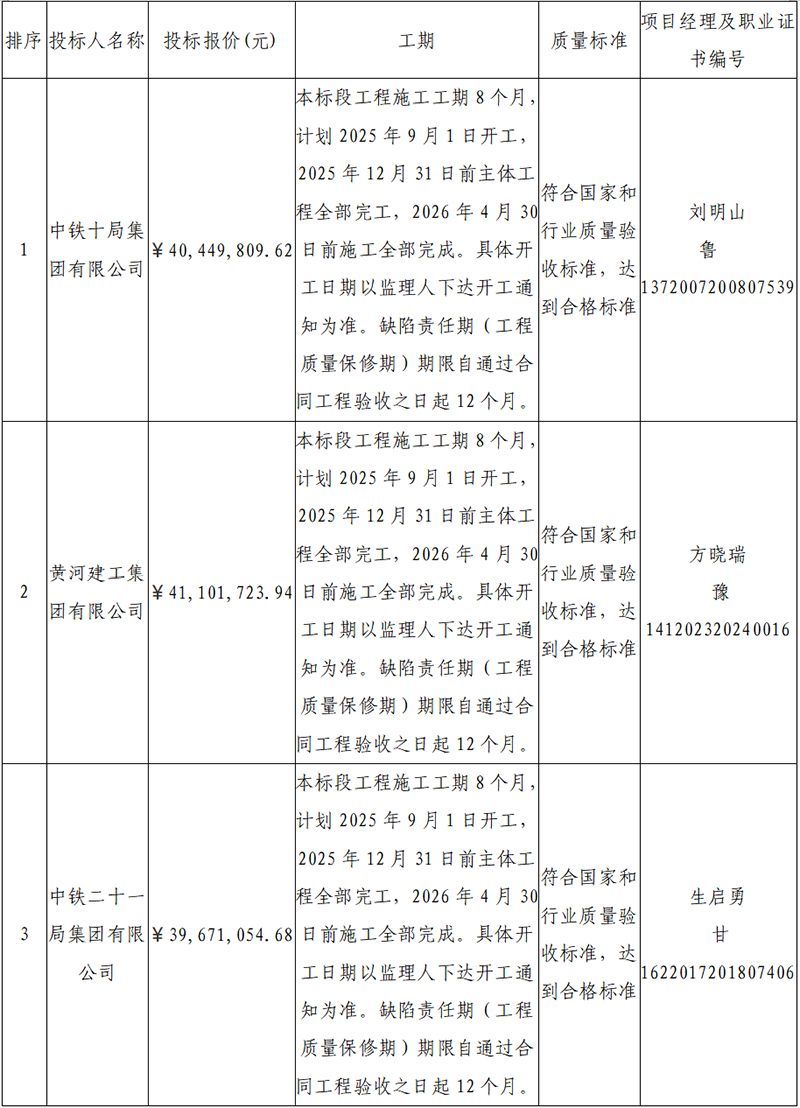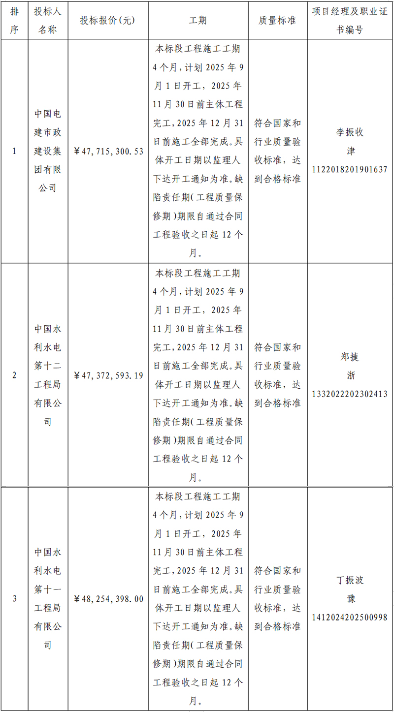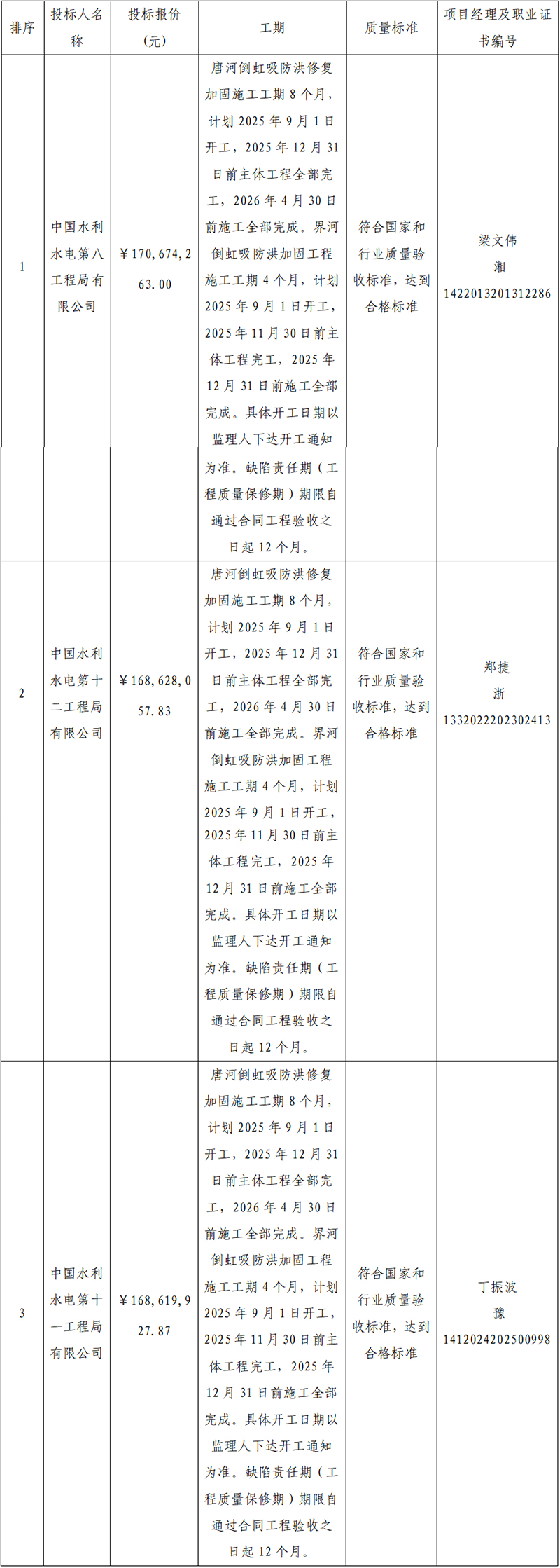 南水北调中线河北分公司防洪修复加固项目(2025年度) 施工项目中标候选人公示