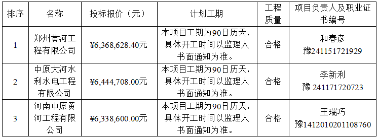 南水北调中线穿黄工程河床盾构换刀地基防护搅拌桩拆除施工项目(第2次招标)中标候选人公示