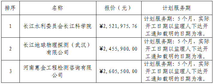 南水北调中线穿黄B洞2025年检查维护项目排查检测标(第2次招标)中标候选人公示